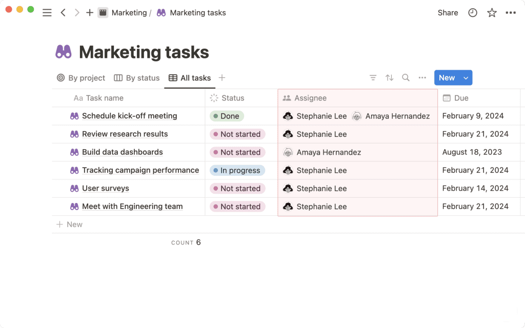 Users can easily create and manage tasks within Notion, assigning them to team members, setting due dates, adding tags, and tracking progress. The drag-and-drop interface makes it simple to adjust task priorities and project timelines, ensuring smooth and dynamic project planning. Notion’s databases allow teams to create relational databases for managing tasks, projects, and resources, providing a structured yet flexible way to organize project data.